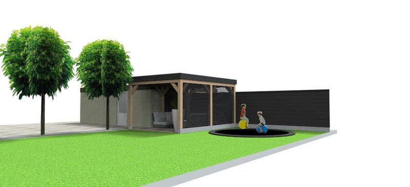 Professioneel 3D-ontwerp van uw nieuwe tuin met overkapping
