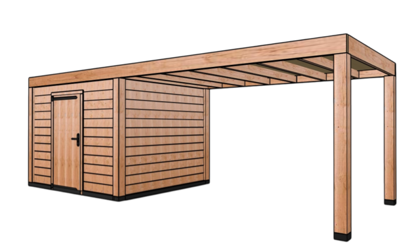 Moderne overkapping 400 x 300 cm met berging 300 x 300 cm